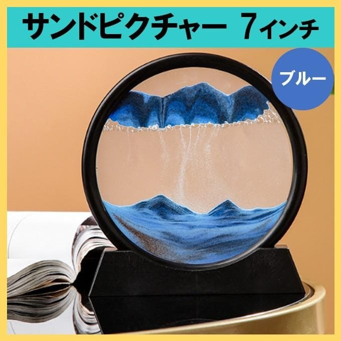 - サンドピクチャー 7インチ ブルー 流れる砂アート インテリア オブジェ
