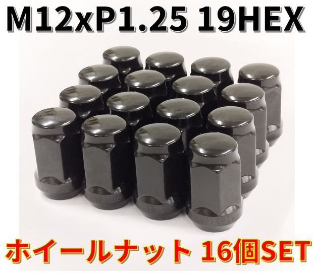 > ホイールナット M12 P1.25 19HEX 12x1.25 35mm ブラック つば付き 袋タイプ 16個 新品 ニッサン スバル スズキ など 1212519-1