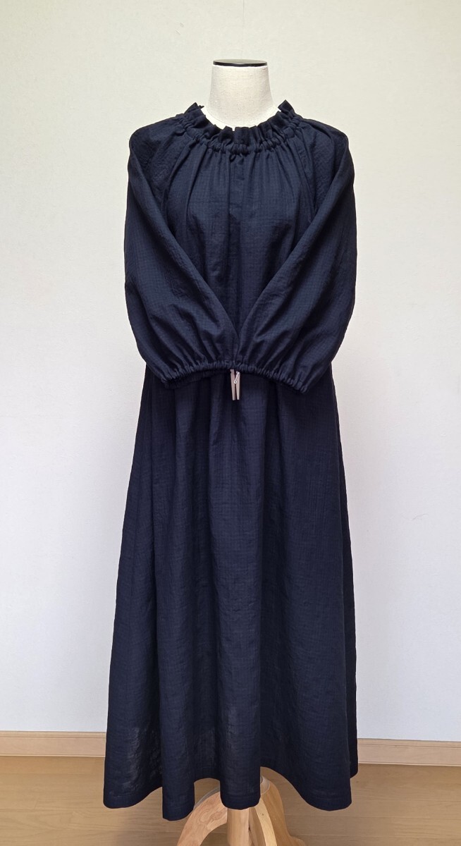 - ★ハンドメイド★接結ガーゼ☆フリル襟のロングワンピース(ネイビー