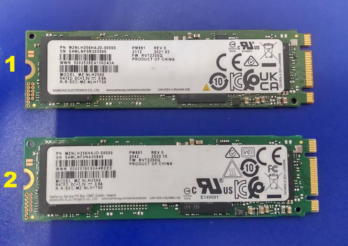 - M.2(SSD)SATA B+M Key SamSung 256GB×2枚 データ消去済み ④