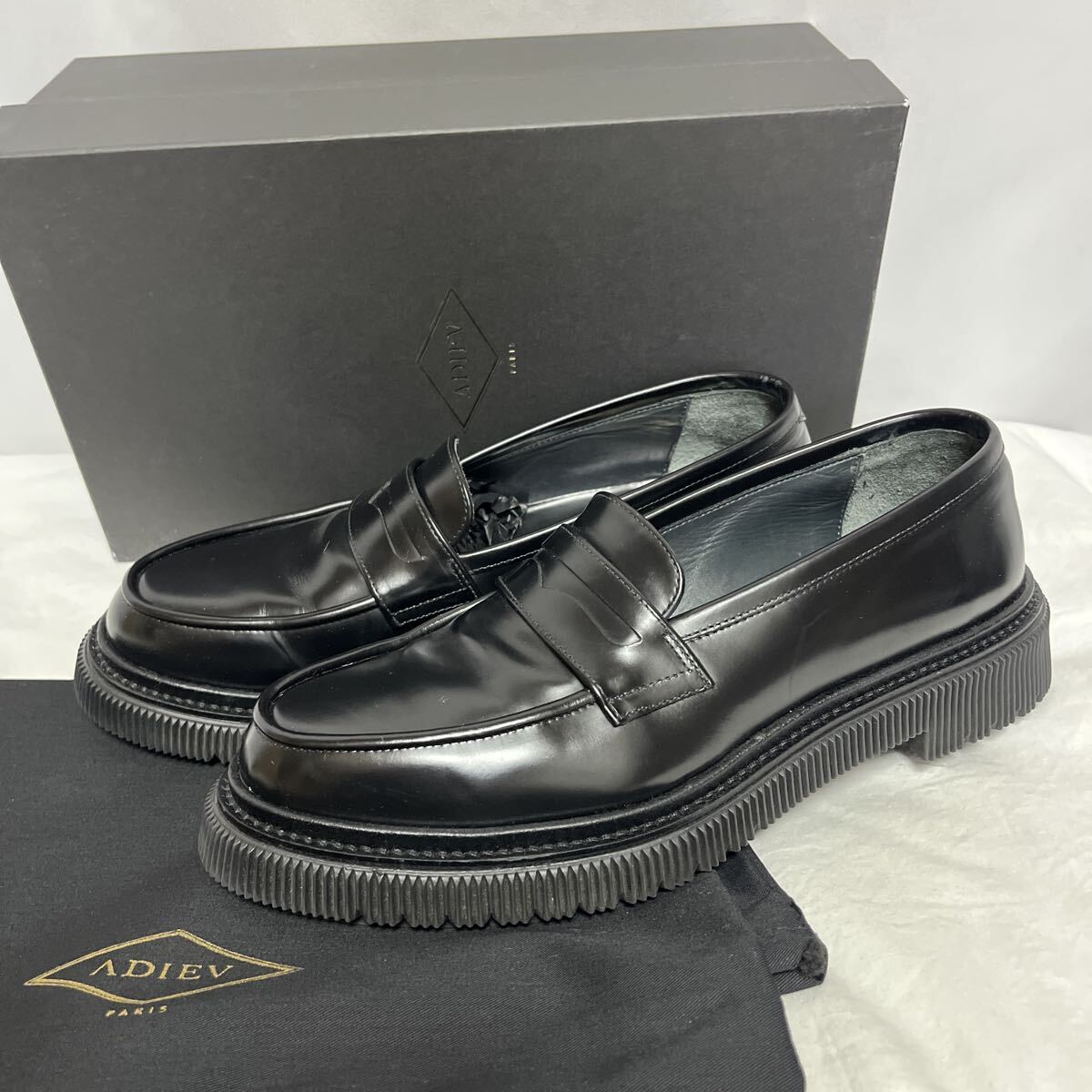 - 美品 ADIEU TYPE 159 レザーローファー POLIDO BLACK 43 28cm〜28.5cm 黒 ブーツ アデュー スリッポン コインローファー レザーシューズ