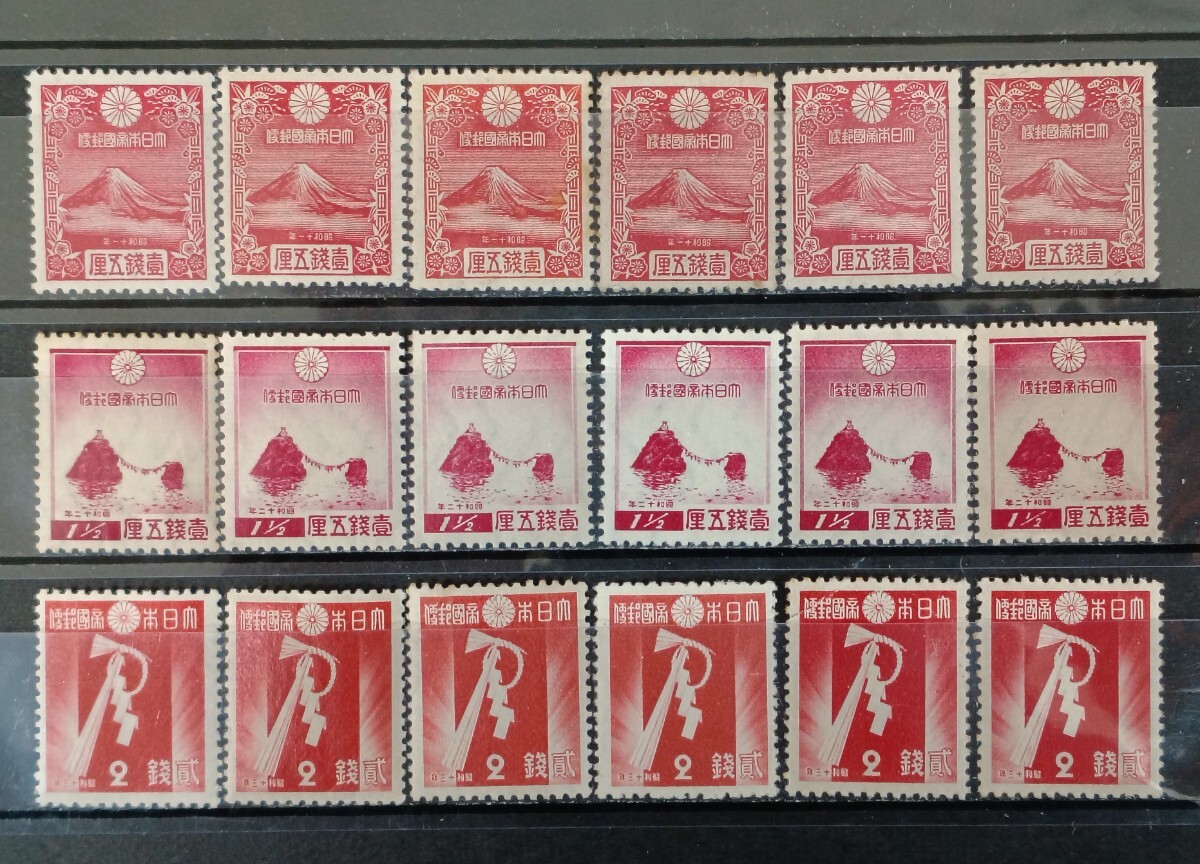 > ●★ 日本切手 年賀切手 昭和11年富士山・12年二見ヶ浦・13年しめ飾り 各6枚ずつ ★
