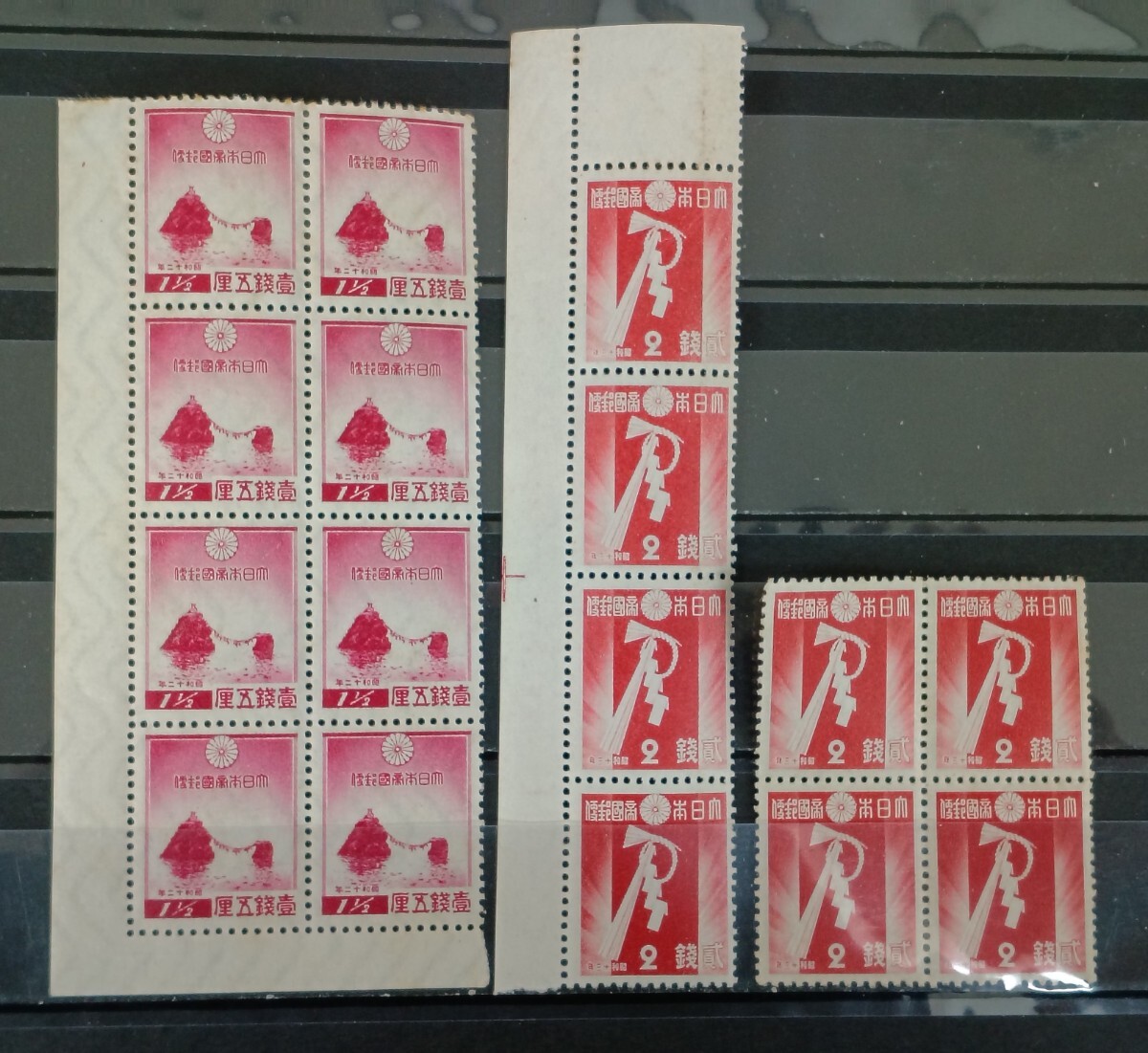 - ●★ 日本切手 年賀切手 ブロック 二見ヶ浦・しめ飾り 2種 8枚ずつ ★●