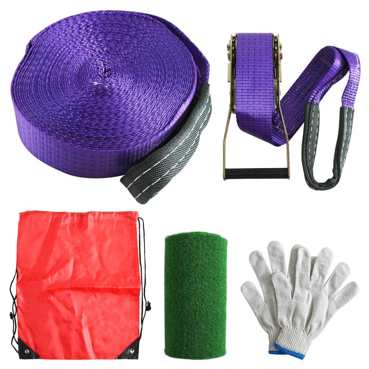 - [ツリーウェア付] スラックライン Slackline 遊びながらバランス感覚/体幹強化 筋トレ 筋肉 バランスウォーカー 綱渡りスポーツ パープル
