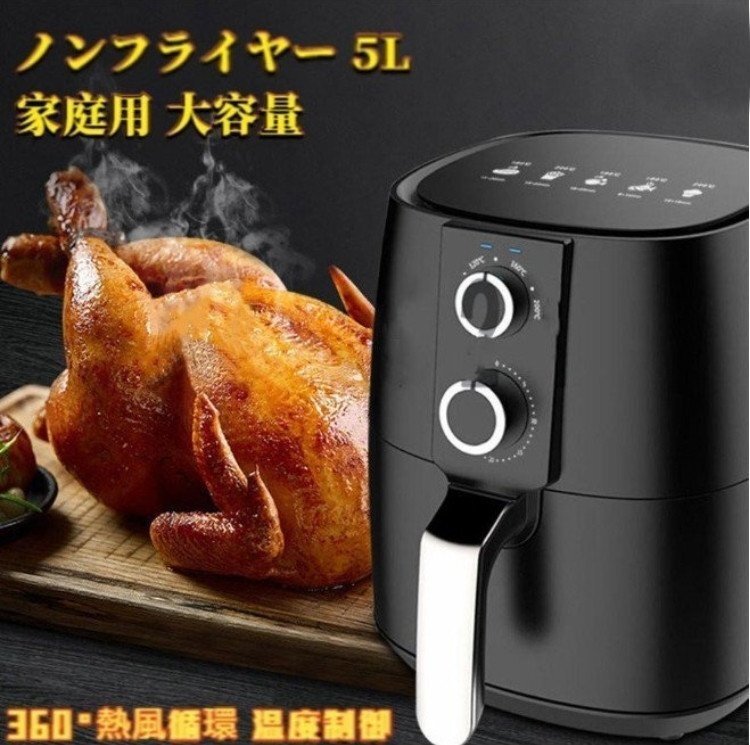 - ノンフライヤー 5L 家庭用 大容量 電気フライヤー エアフライヤー 360°熱風循環 温度制御 30分タイマー 揚げ物 グリル ベーキング用