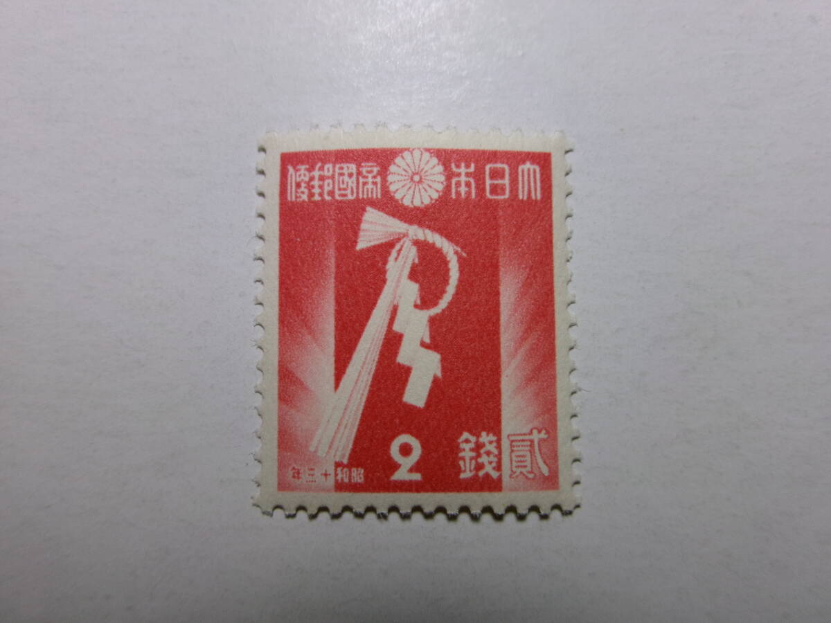 - 1937年(昭和13年用)年賀切手 しめ縄 未使用 緑-L