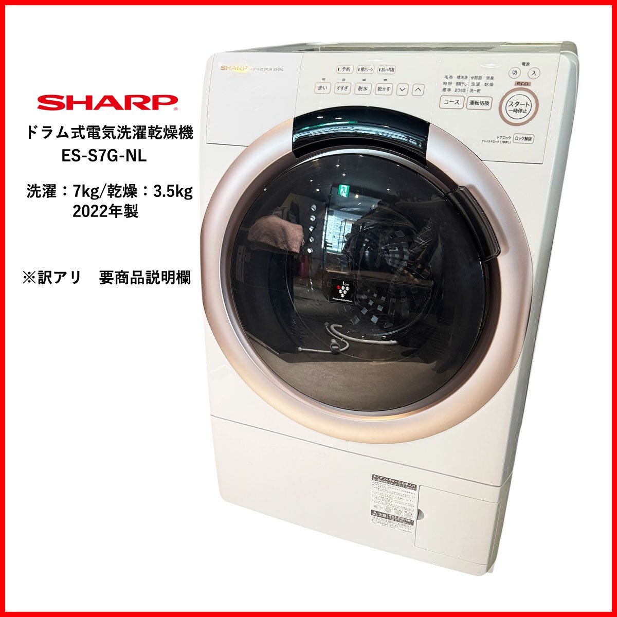 - 一部難あり●SHARP/シャープ ドラム式電気洗濯乾燥機●ES-S7G-NL 2022年製 洗濯7kg/乾燥3.5kg 左開き 中古 札幌