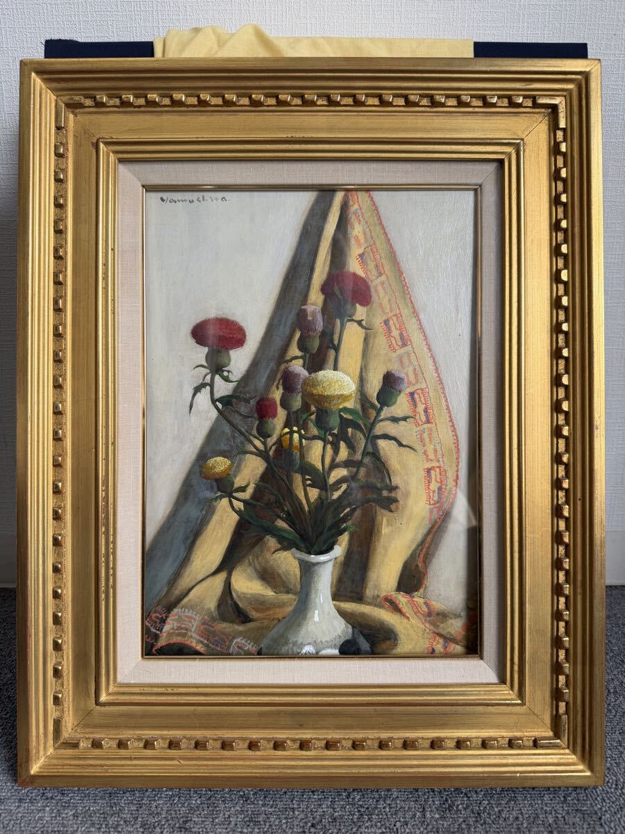 - 真作 山下徹 【薊】 4号 油彩 油絵 額 絵画 静物