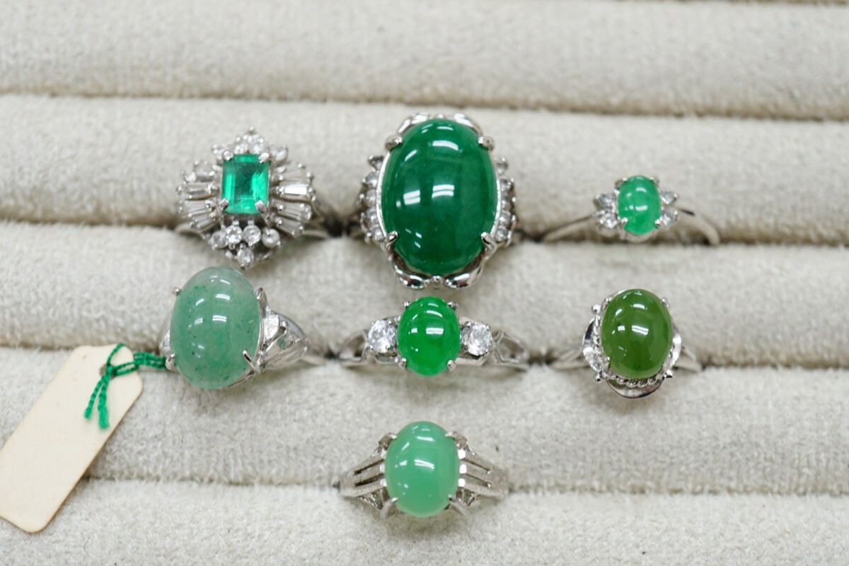 > B480 緑石 天然石系 リング 指輪 カラーストーン ヴィンテージ アクセサリー 大量 セット まとめて おまとめ まとめ売り SILVER含む