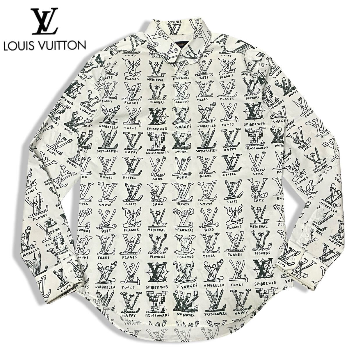 > 2 国内正規品 LOUIS VUITTON ルイヴィトン 21ss プレイス グラフィック LV モノグラム 長袖コットン ドレスシャツ 総柄 S フランス製