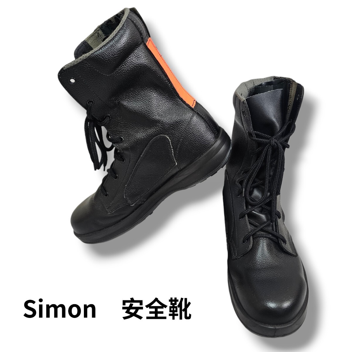 - S■ Simon シモン メンズ 静電気帯電防止靴 安全靴 消防 JIS規格 長編み上げ レザー 革 ブーツ 27EEE 黒 ブラック 靴 シューズ 日本製