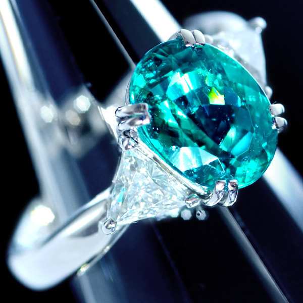 - C7878 逸品大粒パライバトルマリン2.88ct 天然絶品ダイヤモンド0.54ct 最高級Pt900無垢セレブイティリング