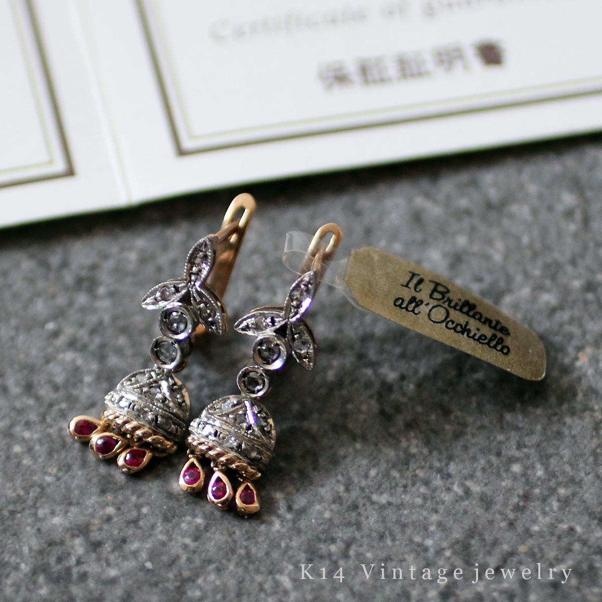 > 証明書 有 未使用 K14 WG YG 天然 ダイヤ モンド 0.40ct ルビー 0.14ct 5.7g ヴィンテージ ピアス イエロー ホワイト ゴールド 585