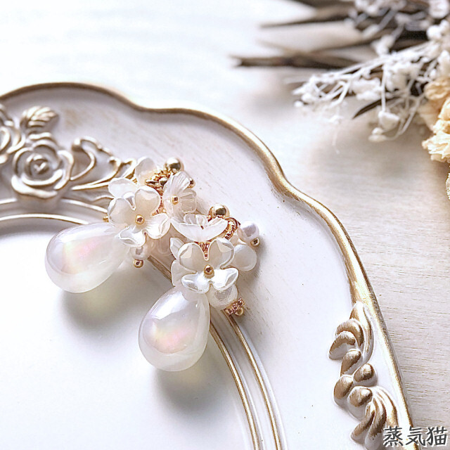 - a5006 フラワータッセル 月光の雫パールチャーム2個【宇宙 花ピアス イヤリング 材料ハンドメイド アクセサリーパーツ素材】蒸気猫パーツ