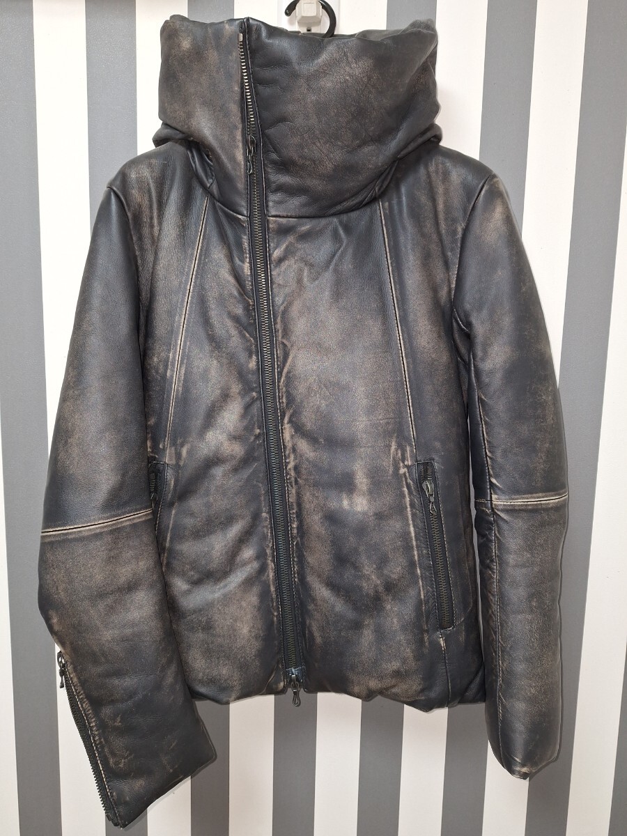 - 格安!シェラックのシープスキンレザーハイネックフーデッドダウン 5351 シェラック