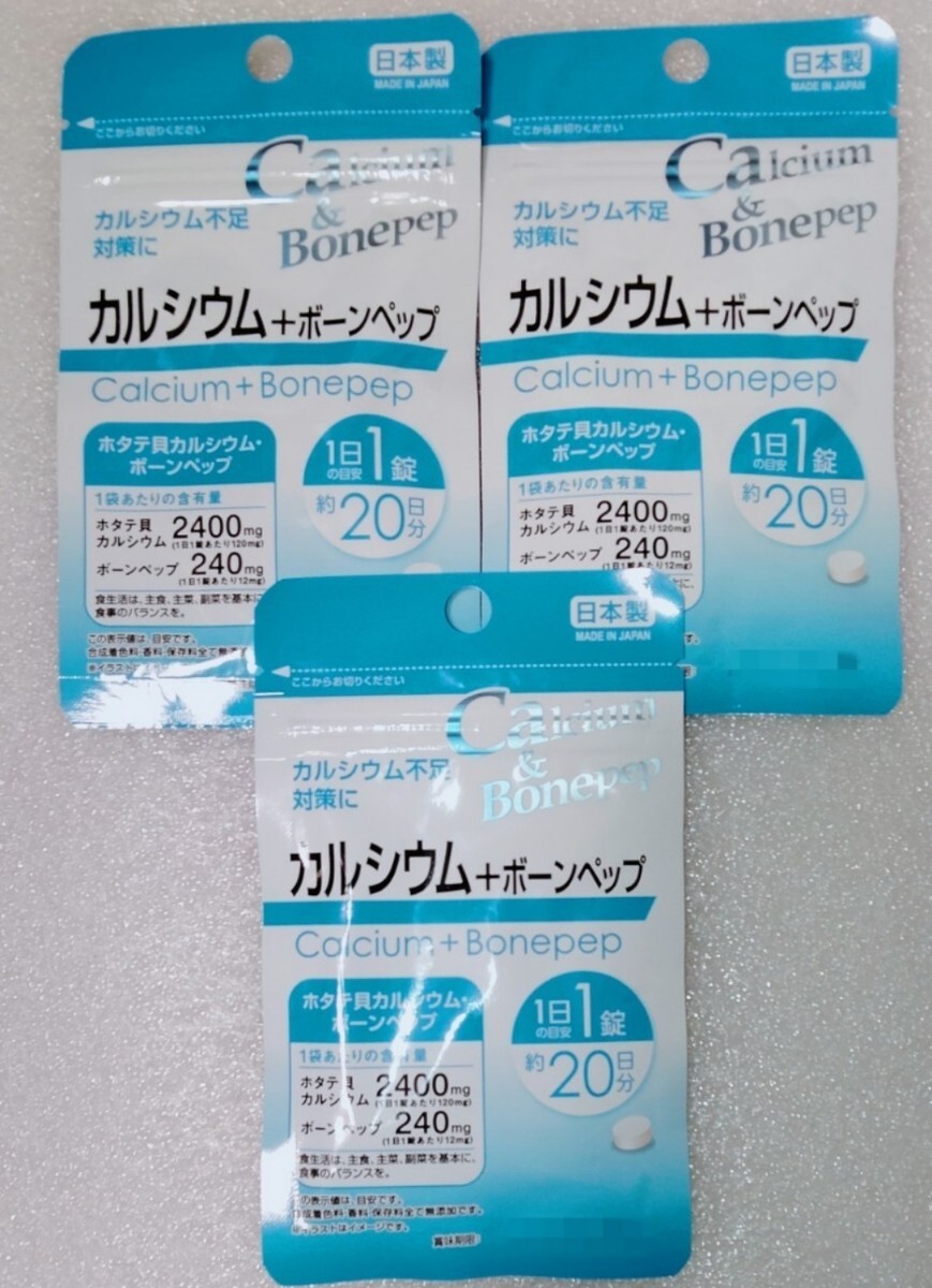 - カルシウム+ボーンペップ【合計60日分3袋】1日1錠 カルシウム不足に 栄養機能食品 日本製 サプリメント ホタテ貝カルシウム