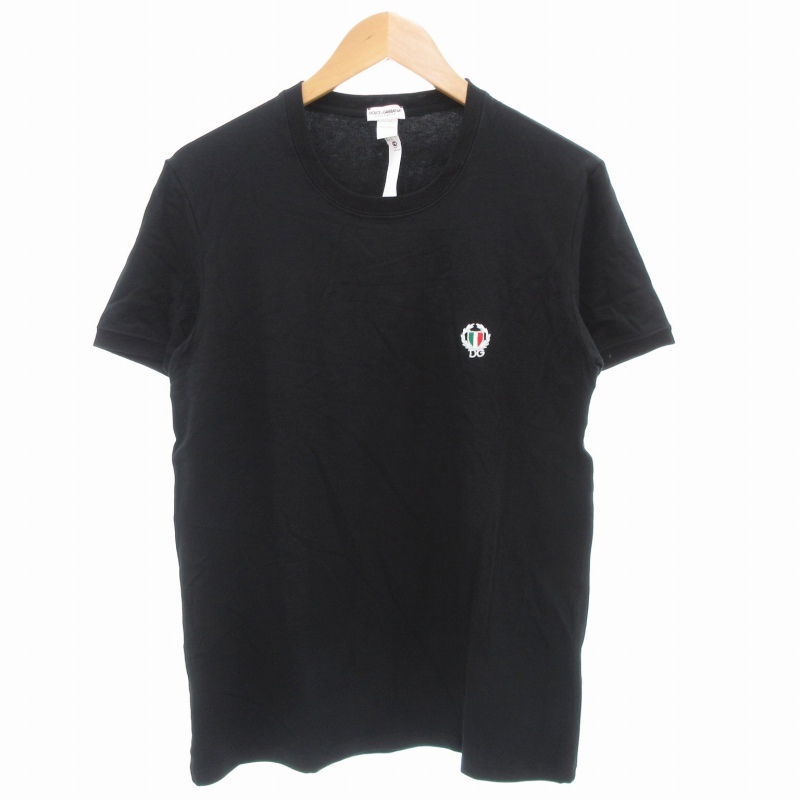 > ドルチェ&ガッバーナ ドルガバ DOLCE&GABBANA アンダーウエア UNDER EWEAR Tシャツ 半袖 クルーネック 刺繍ロゴ M 黒 ブラック