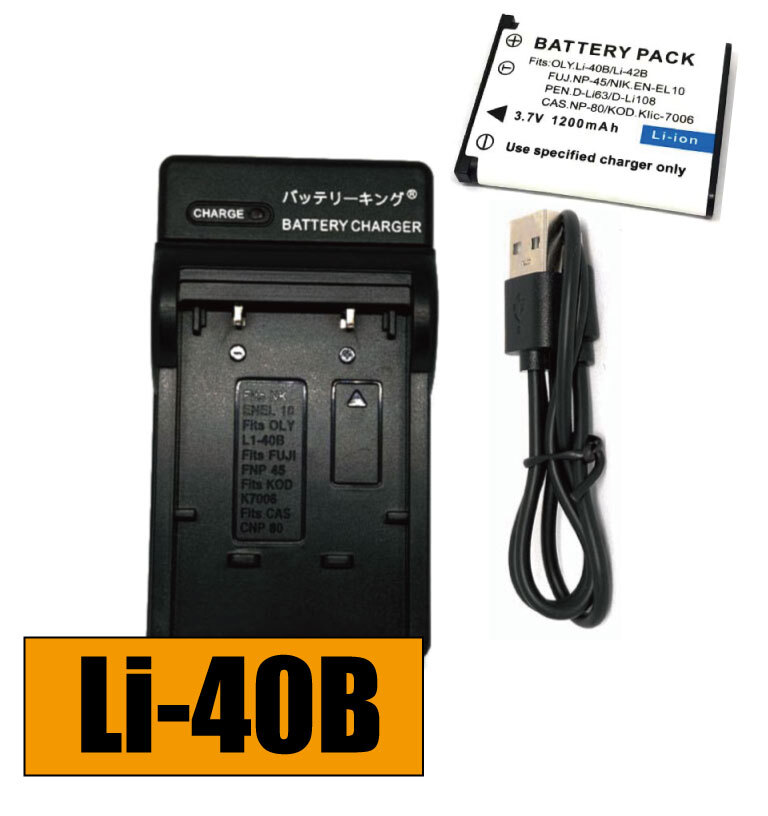 > 【送料無料】 バッテリー&充電器 オリンパス OLYMPUS Li-40B Li-42B Li40B Li42B LI40B USB付き 互換品