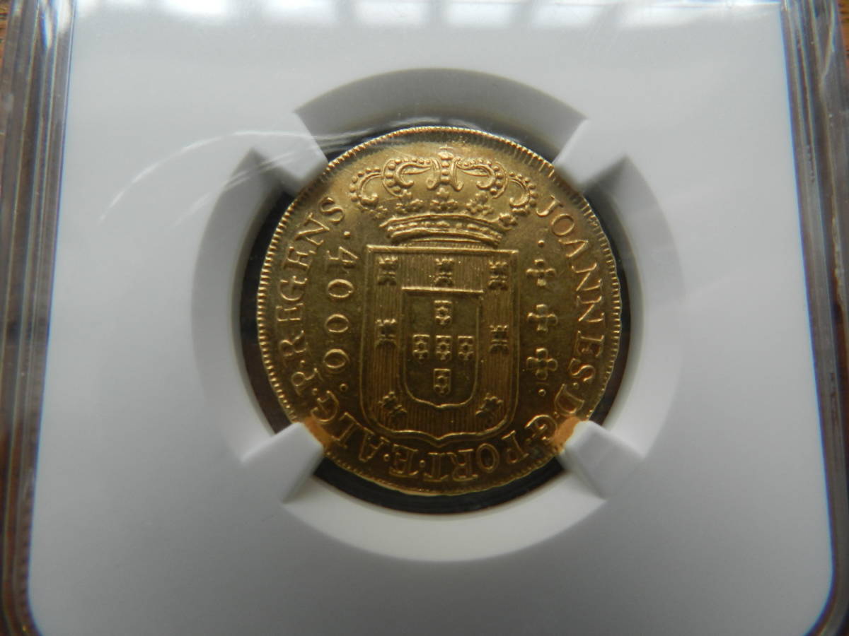 - ☆本物保証 MS61 ポルトガル領ブラジル金貨 4,000レイス 1810年☆