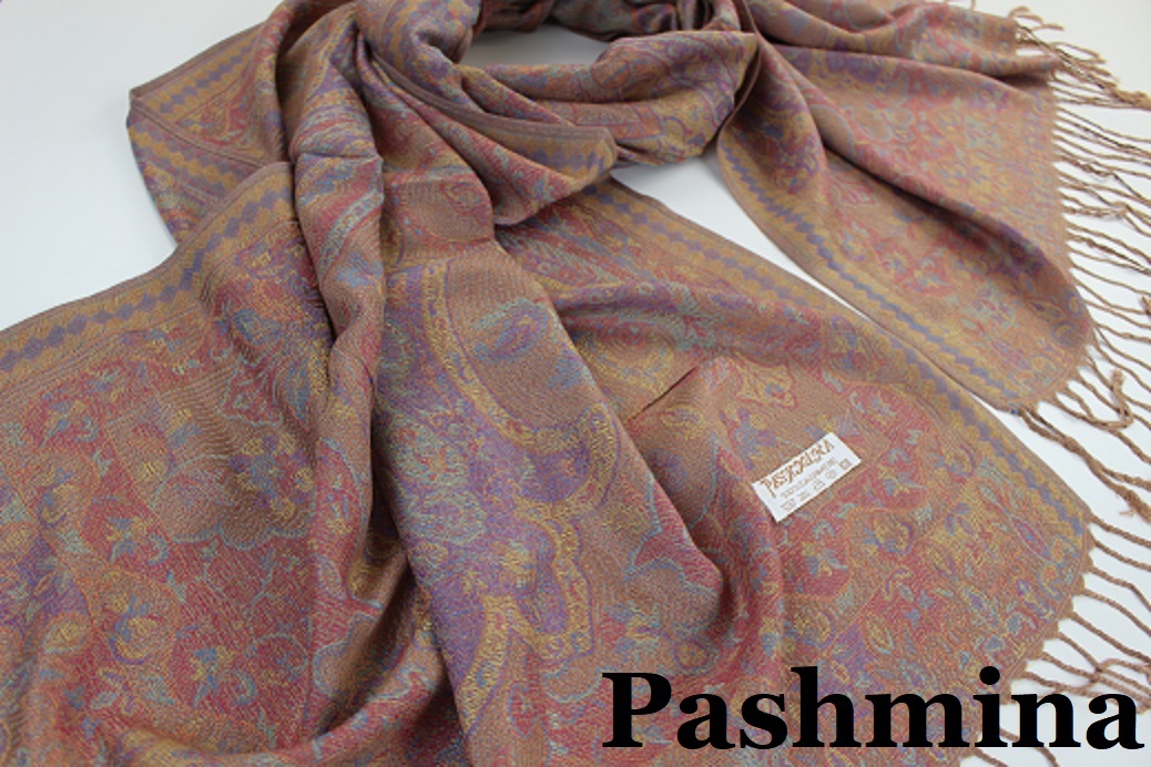 > 新品 アウトレット【Pashmina パシュミナ】華 BIGペイズリー柄 大判 ストール C.BROWN 茶色 キャメルブラウン系 Cashmere カシミア100%