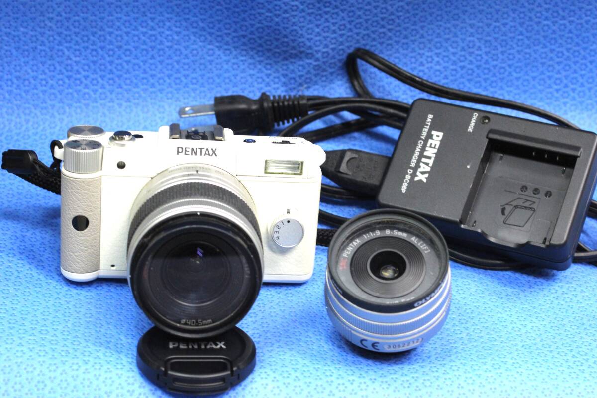 > PENTAX Q 5-15/2.8-4.5+8.5/1.9 純正バッテリーD-LI68 充電器 フィルター(ケンコー・オリンパス) キャップ付き