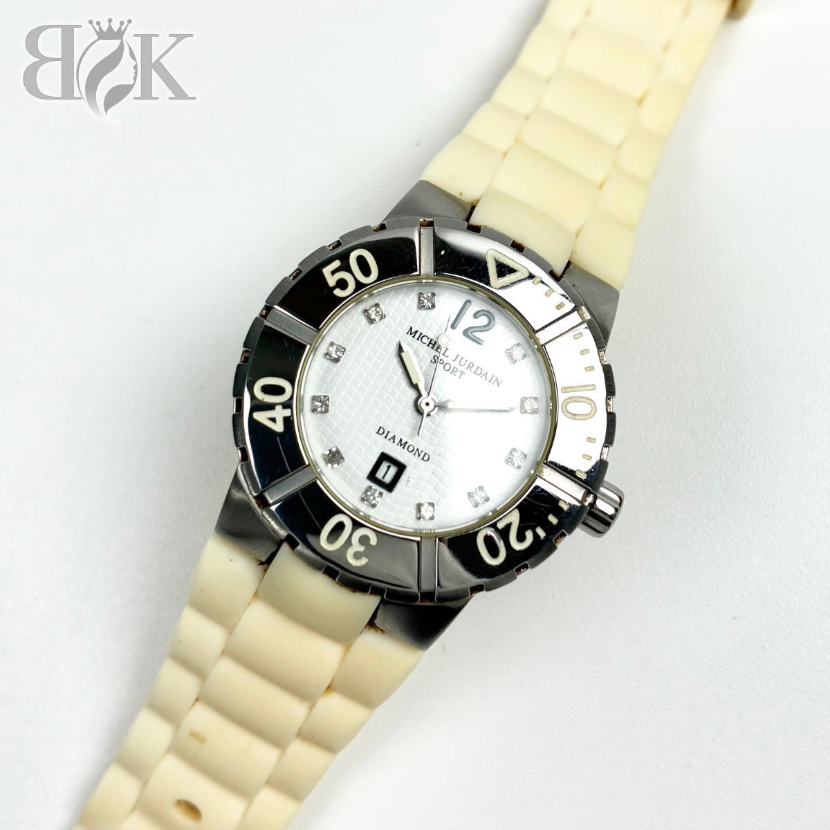 > ミッシェル ジョルダン ダイヤモンド レディース 腕時計 スポーツ クォーツ SS ステンレス ラバーベルト 稼働品 MICHEL JURDAIN 中古 #