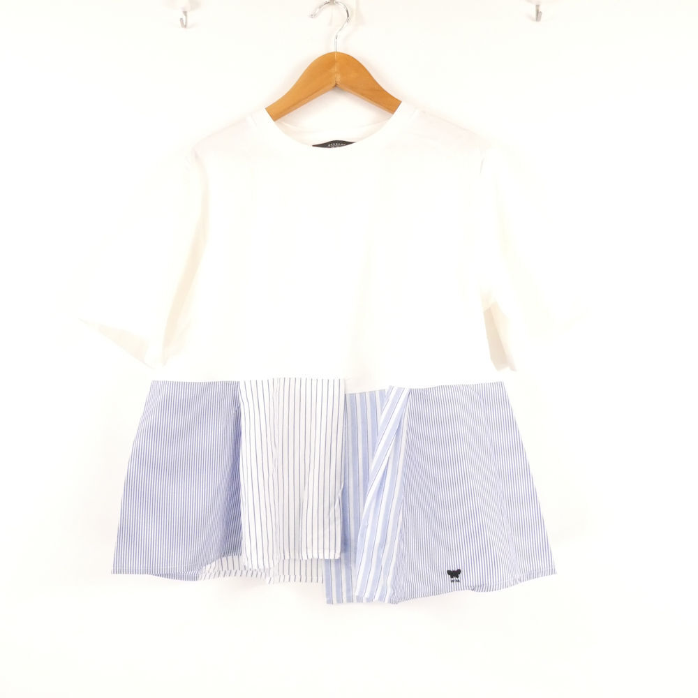 - 美品 maxmaraWEEKEND マックスマーラ Tシャツ S コットン100% 半袖 切り替え ストライプ レディース AM8116A45