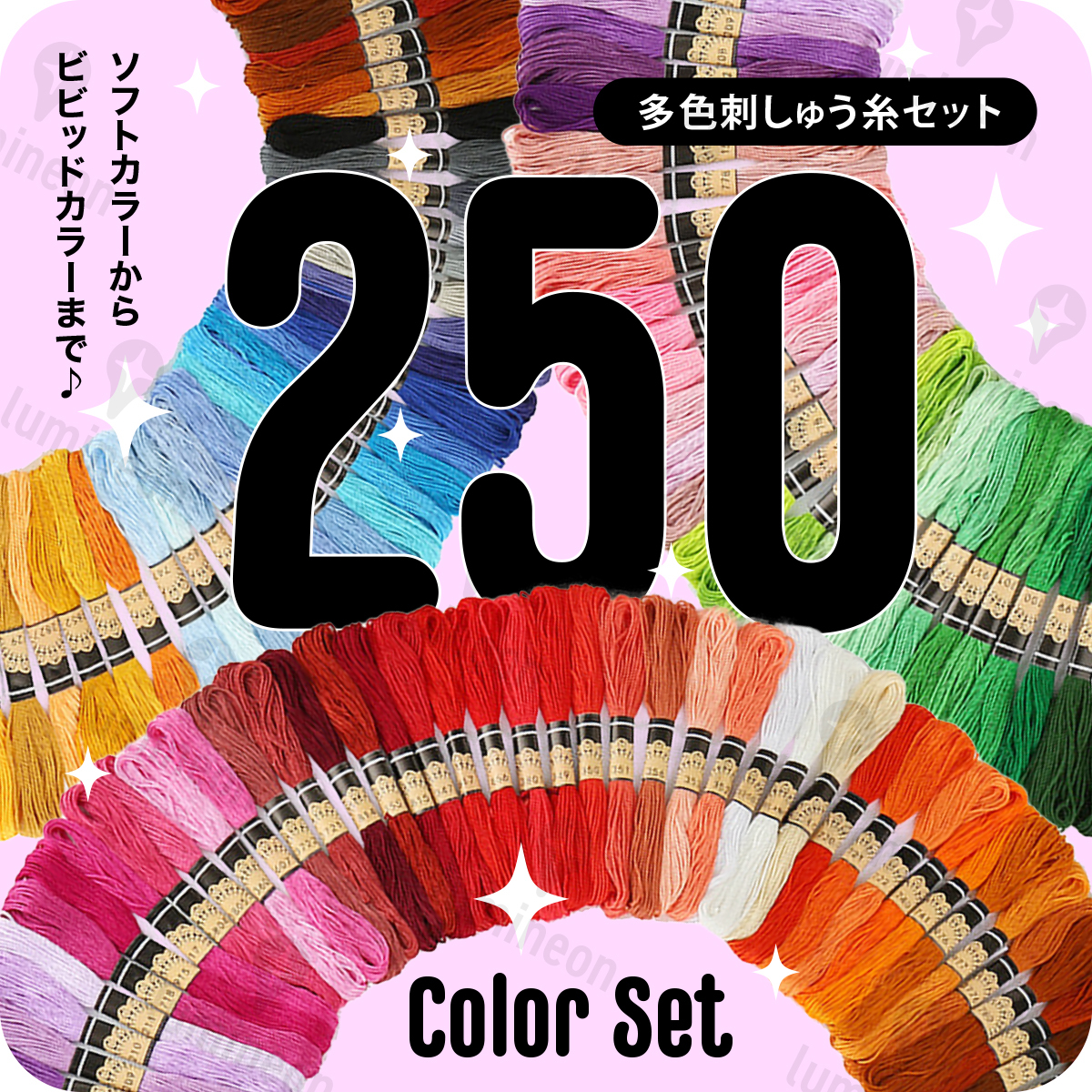> 刺繍 糸 刺しゅう 25番 250色 アソート セット クロスステッチ 裁縫 手芸 ミサンガ 白系 黒 赤 青 黄色 青 緑色 くすみ ベージュ g012e 2