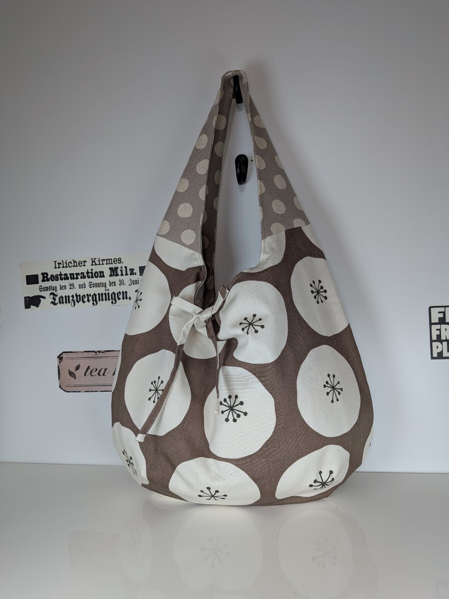 - 17♪ワンショルダーバッグ♪大きめの花模様★布の軽いバッグ★水玉の生地と合わせて★巾広の肩紐★コッ★入り口が大きく空きます