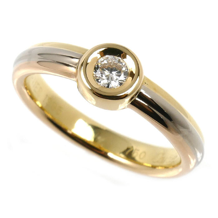 - CARTIER カルティエ K18YG/PG/WG モノストーン スリーカラー リング・指輪 ダイヤモンド 12号 52 5.0g レディース 中古 美品