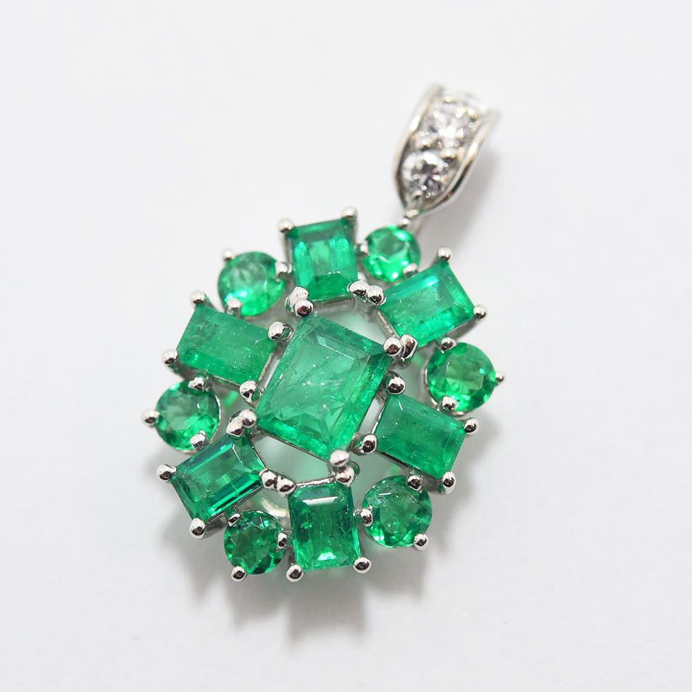 - エメラルド 1.50 ダイヤモンド 0.12 ペンダントトップ PT950 新品磨き仕上げ 中古