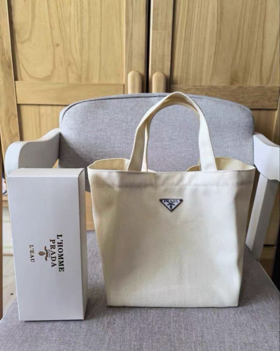 - ノベルティ プラダ 金属 ロゴプレート ミニトートバッグ アイボリー 箱付き