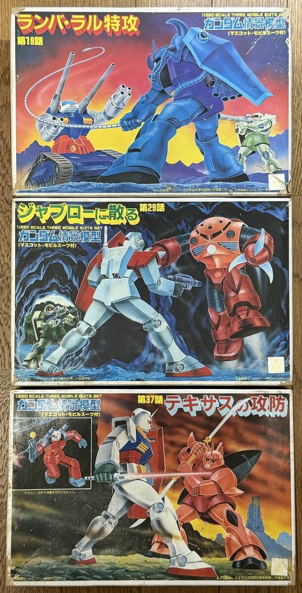 > バンダイ 旧キット: ガンダム情景模型 1/250 SCALE ランバ・ラル特攻 & ジャブローに散る & テキサスの攻防 3種 未組立 中古ジャンク