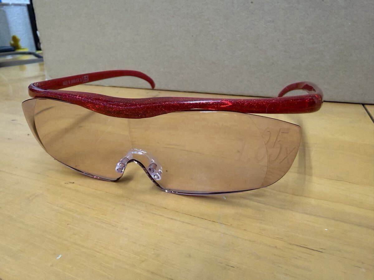- 日本製 未使用 1.85倍 ハズキルーペ 赤系カラーレンズ ラージ ルビー ブルーライトカット 拡大鏡
