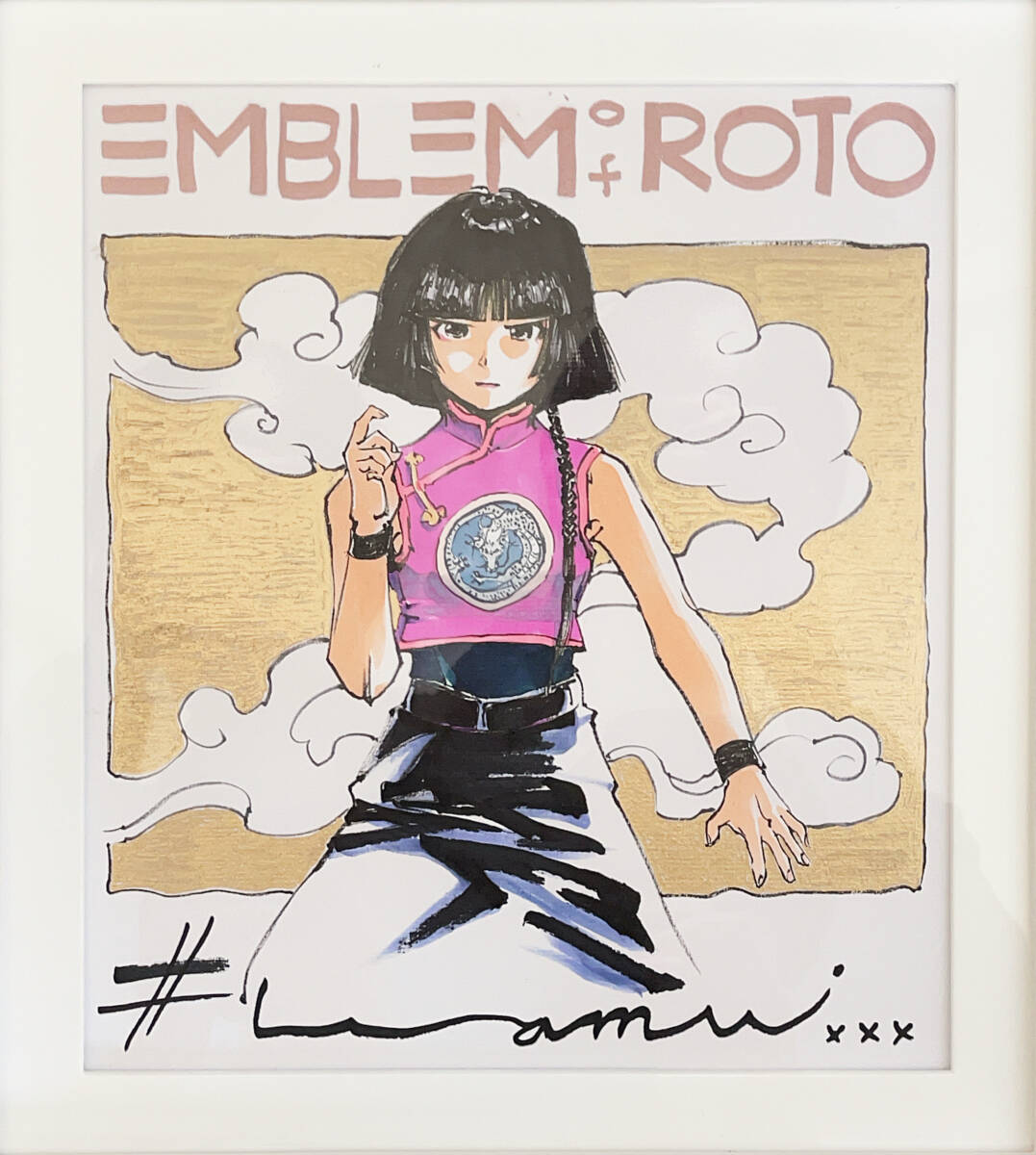 - 藤原カムイ 直筆イラストサイン色紙 額装品 藤原カムイ画集45周年記念 ドラゴンクエスト列伝 ロトの紋章 展示作品 ヤオ