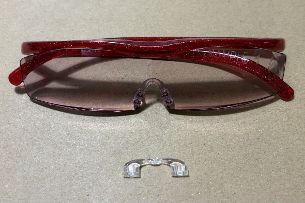 - 新品未使用 ハズキルーペ ハズキコンパクト 1.6倍 カラーレンズ ルビー 交換用鼻パッド付き