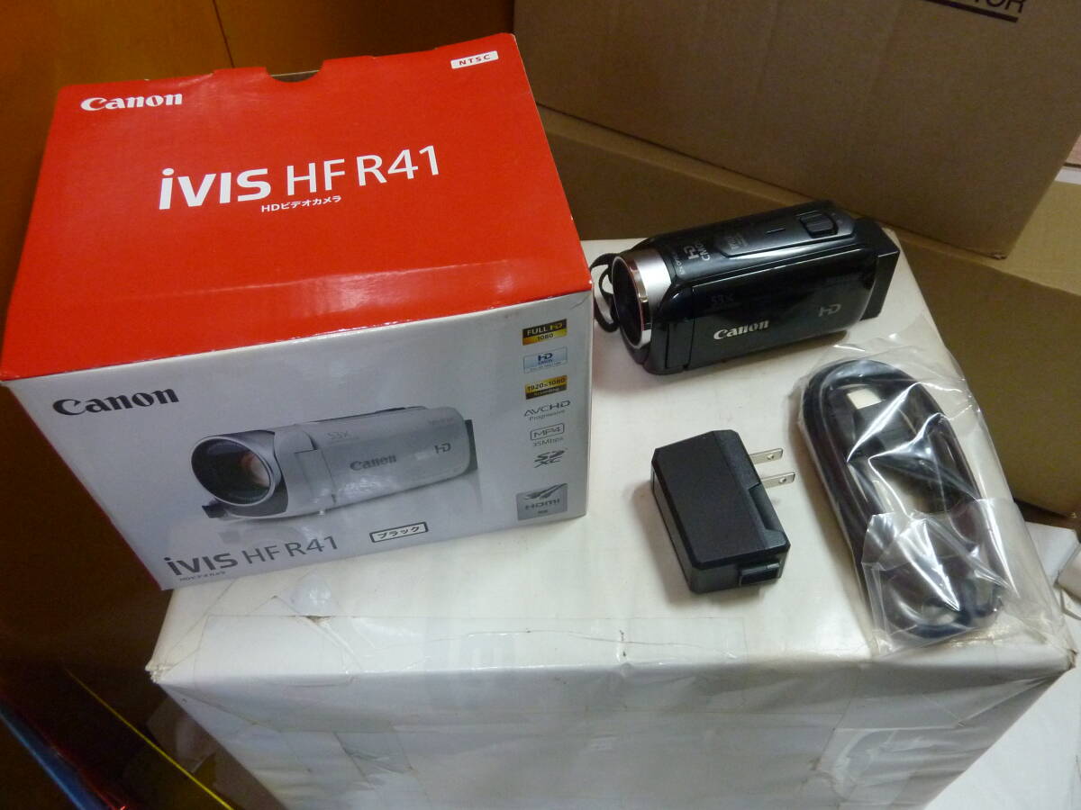 > [ Canon キャノン iVIS HF R41 ]HDビデオカメラ 黒 録画基本動作確認済 カメラカバー下りず 本体約11㎝ 説明書・備品紛失 送料無料