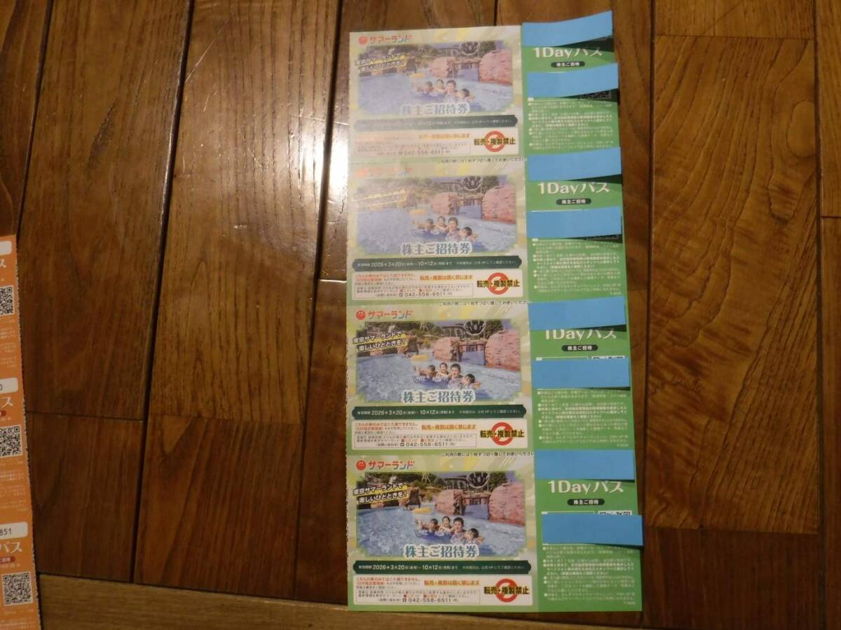 - 【送料無料】2026年版 サマーランド 株主優待 優待券4枚組 1DAYパス