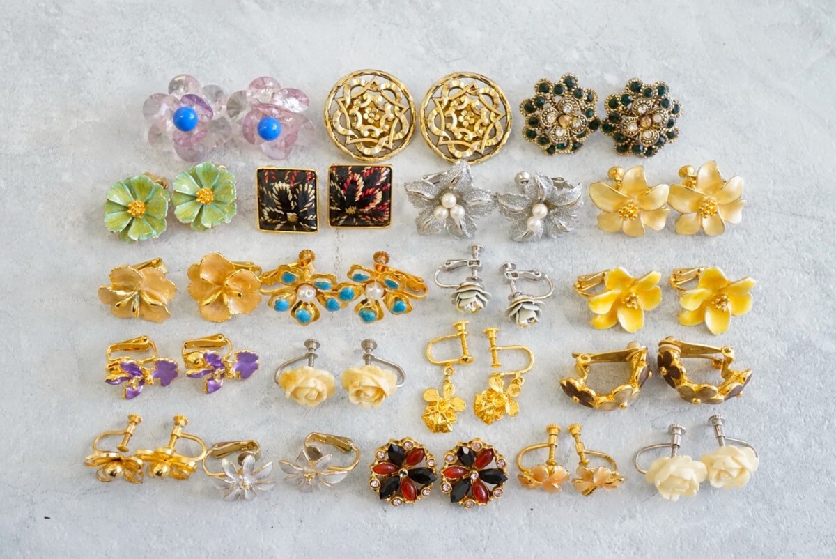> C434 花 フラワー 海外製含む ヴィンテージ イヤリング 両耳揃い 20点セット アクセサリー 大量 まとめて おまとめ まとめ売り