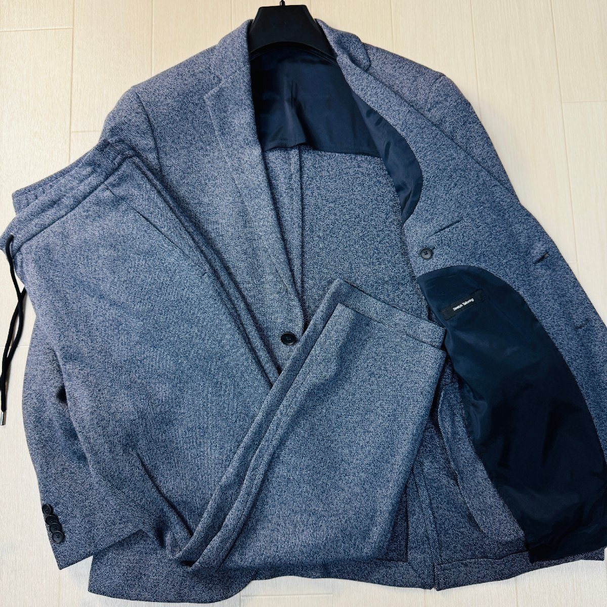 > 未使用並/46 M相当★ヒューゴボス HUGO BOSS メランジ生地 カジュアル セットアップ スーツ ジャケット パンツ メンズ 紺 ネイビー