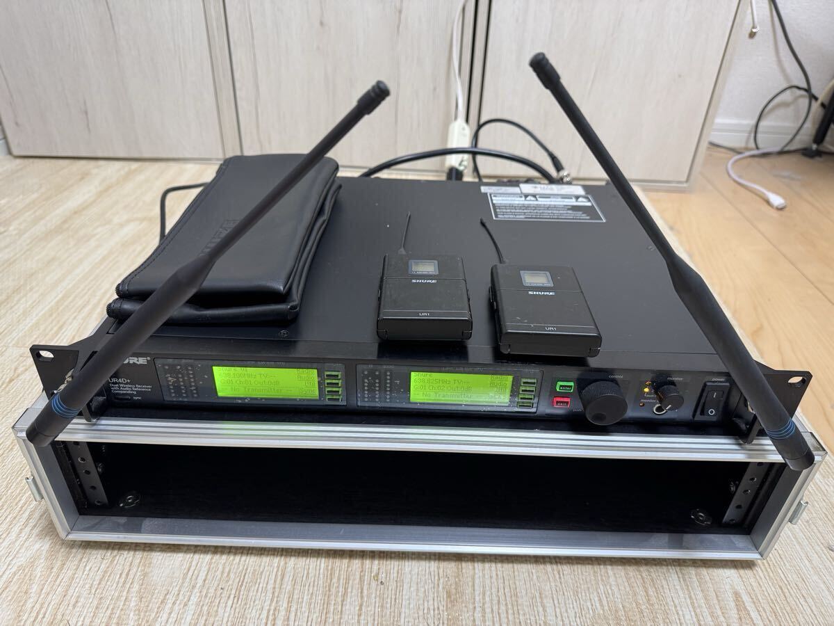 - Shure UHF-R UR4D受信機+UR1ボディーパック×2台 HC付