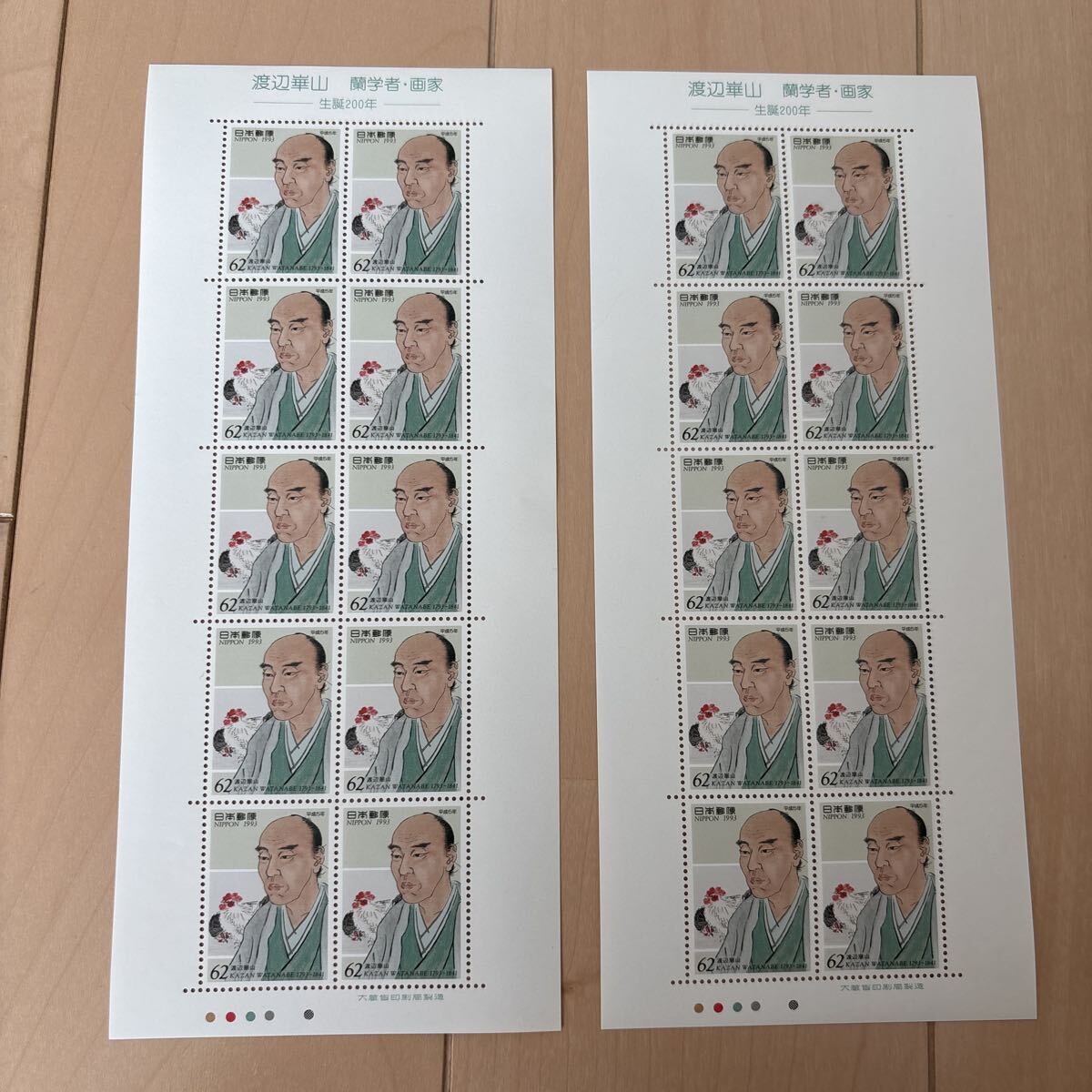 > 未使用 渡辺崋山 記念切手 蘭学者 画家 切手シート 62円 10枚 2枚シート 額面 1,240円