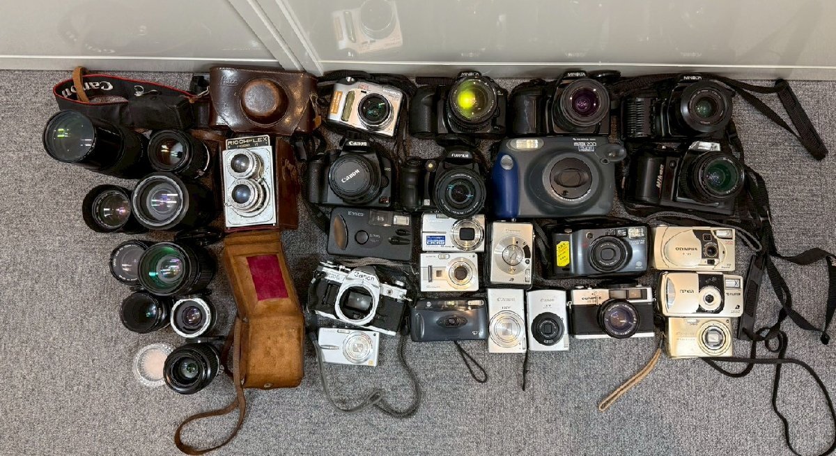 > 【1円~】フィルムカメラ 一眼レフ 二眼レフ デジカメ まとめ 本体 レンズ 部品パーツ canon ニコン OLYMPUS など ジャンク RA-08