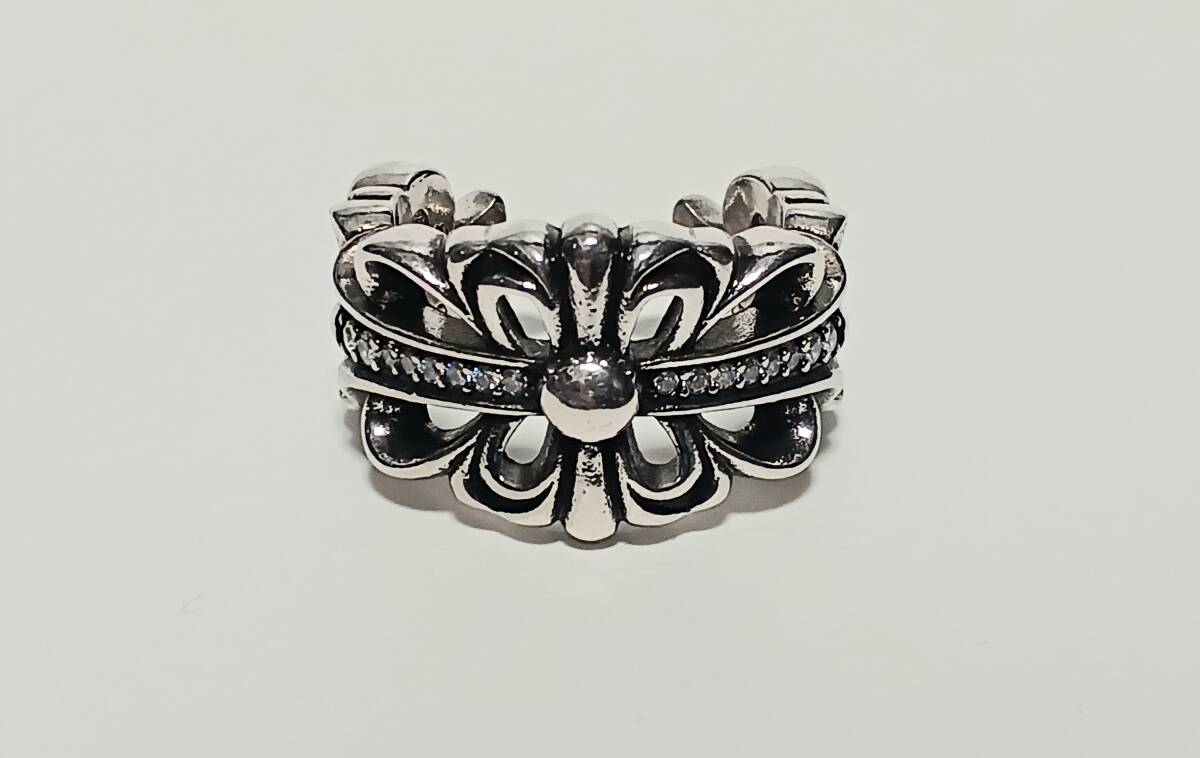 > CHROME HEARTS アフターパヴェダブルフローラルクロスリング クロムハーツ シルバー925 19号
