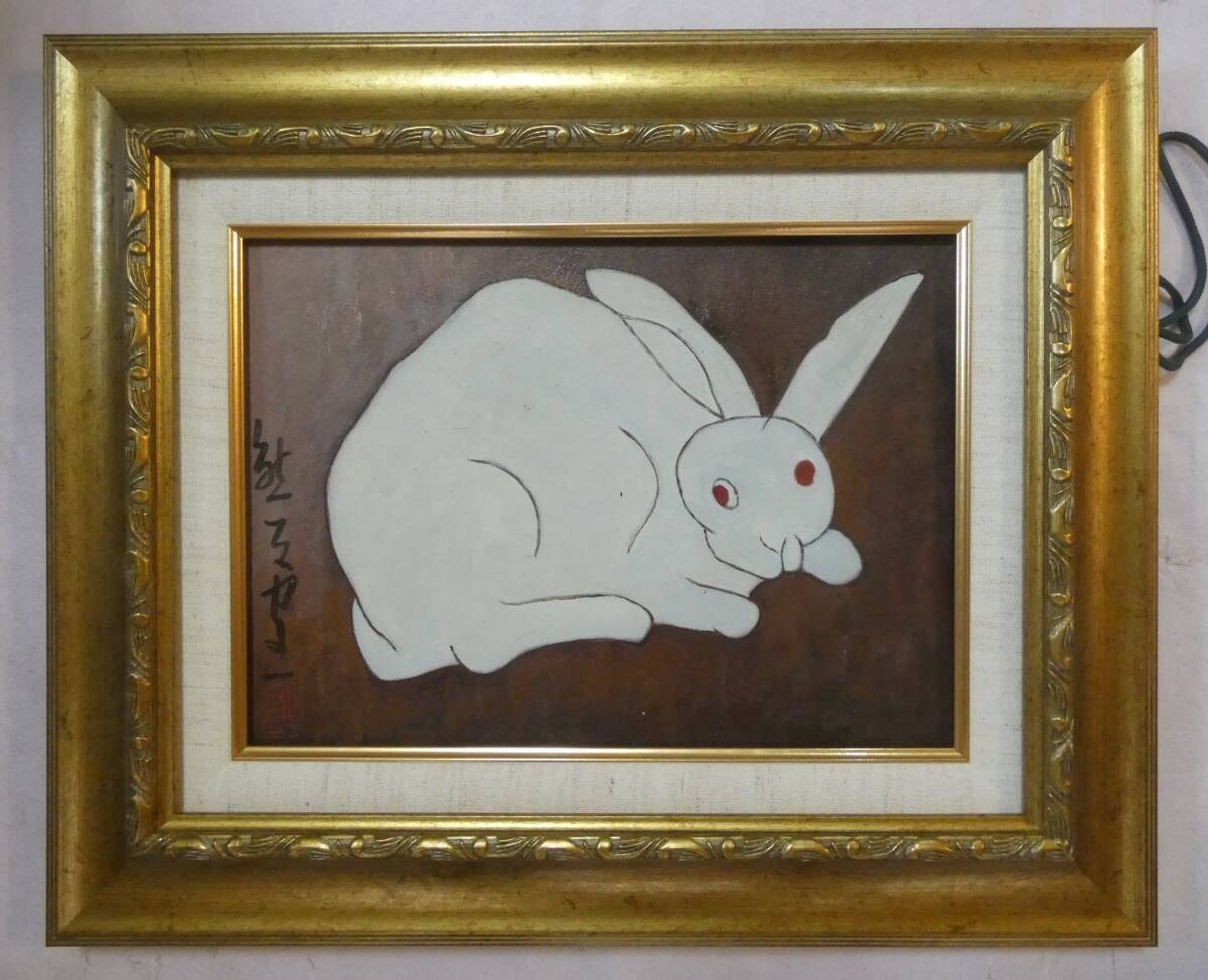 - 【模写】 油絵 熊谷守一 「うさぎ」サイン 額付き F4号