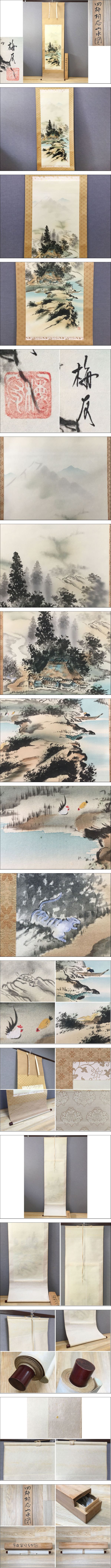 > ◆美品!掛軸 長尾梅友 四神相応山水図 約189cm×約52cm 彩色 風水 厄除け 縁起物 絹本 紙本 掛け軸 茶掛 古美術 共箱付 模写 K-6
