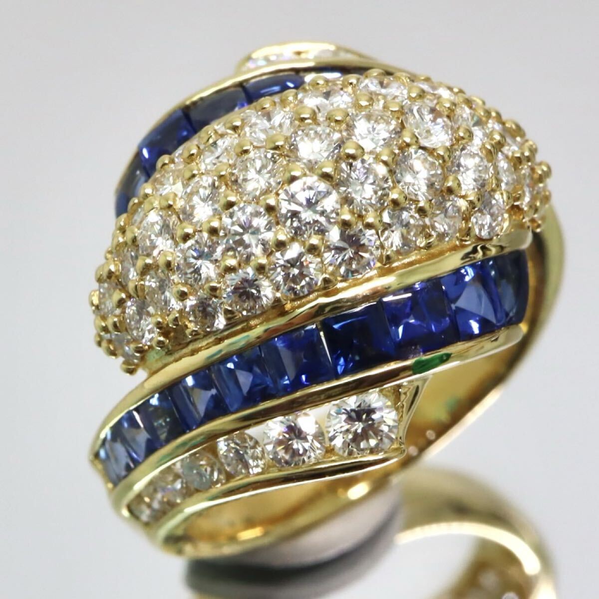 - K18!!2.13/1.75ct!!■天然サファイア/天然ダイヤモンドリング■A 約9.6g 約13号 #13 ソ付き sapphire diamond 指輪 ring FA9/FB2 U995