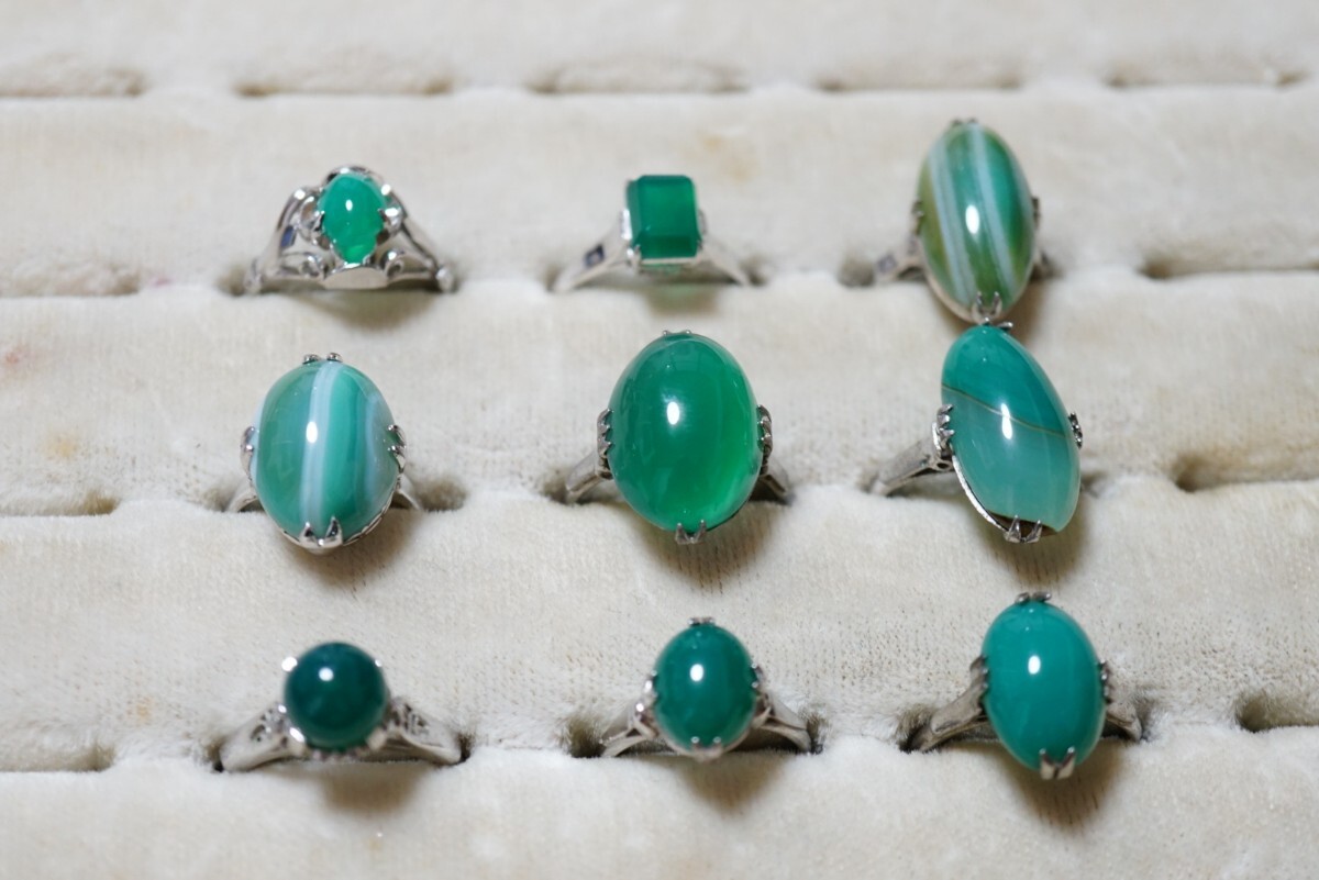 > B2001 グリーンアゲート 瑪瑙 リング 指輪 ヴィンテージ アクセサリー カラーストーン 大量 まとめて おまとめ まとめ売り SILVER含む