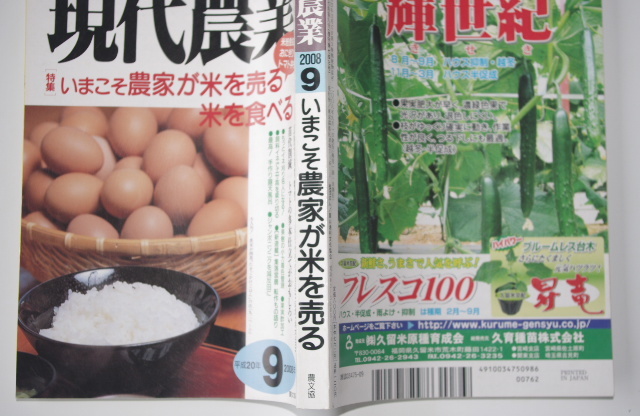 - 農文協 現代農業 2008年9月号 「特集」 いまこそ農家が米を売る 米を食べる