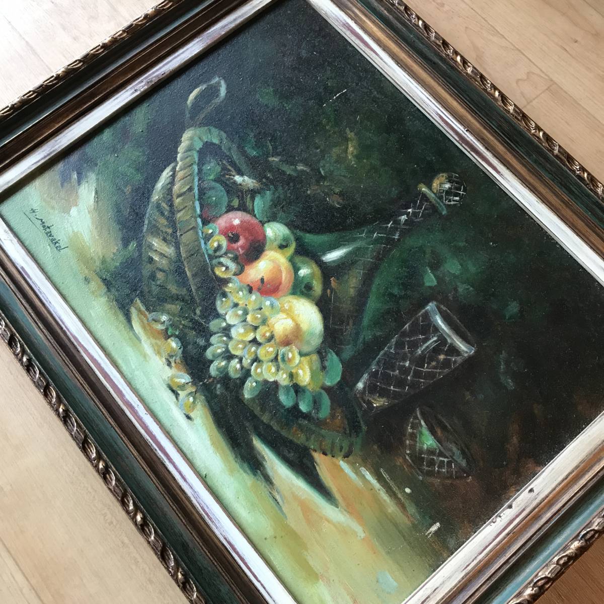 - 貴重!USA製 アンティーク H.Motevakel 果実とグラス静物画 美術品 /北欧ヴィンテージヨーロッパフランス50’sインテリアparisイギリス